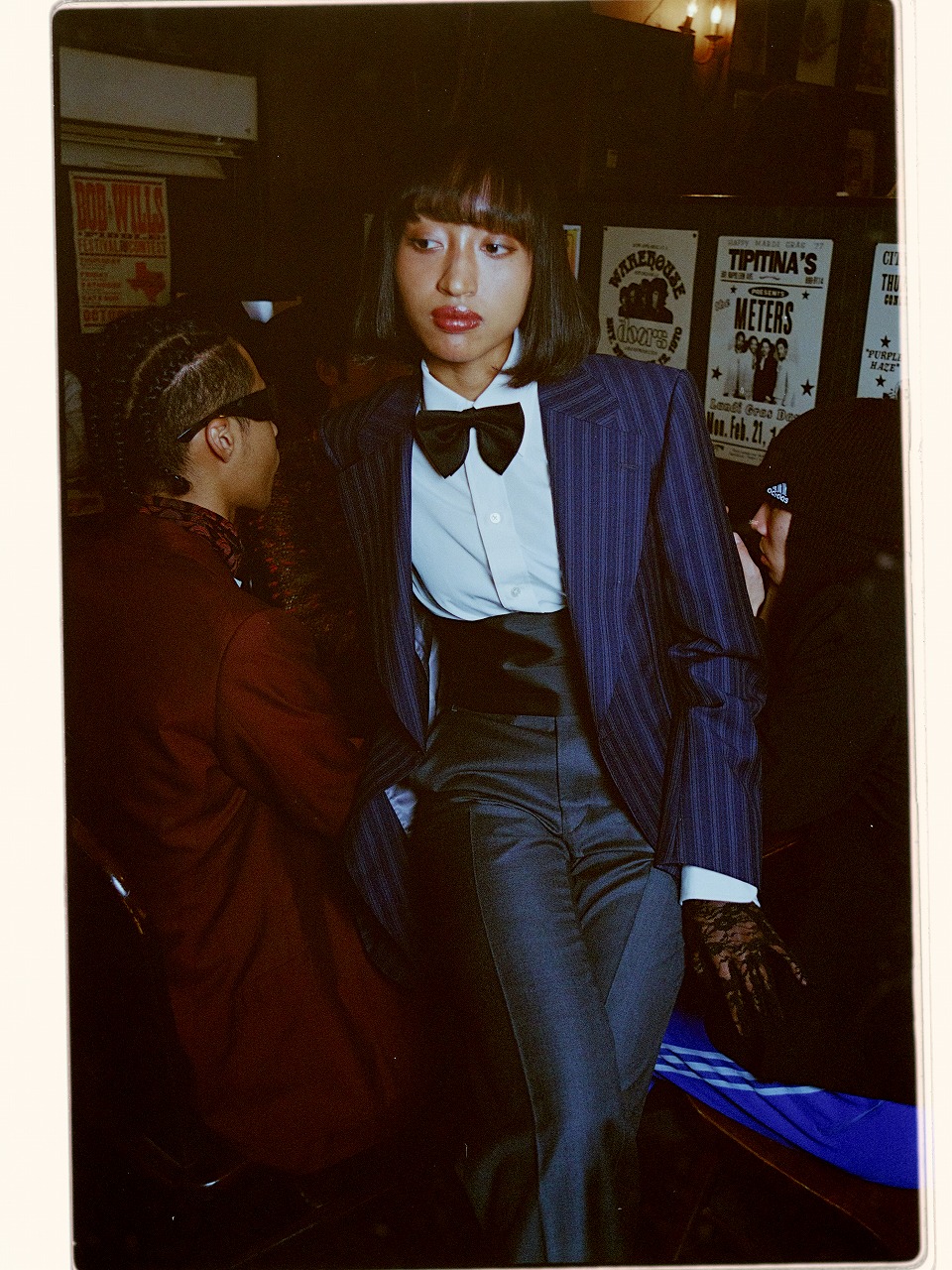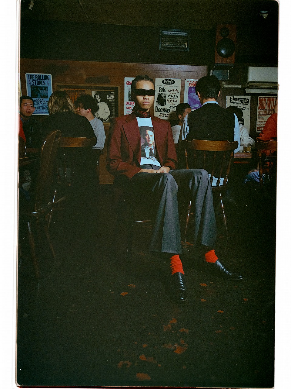 そういった意味で、今シーズンはスーツ品番も充実させています。それぞれは『DK20 Revenge of the popcorn(ポップコーンの逆襲)』は4Bダブルブレストジャケット+ベルトレスフレアトラウザーズ、『DK21 Make no sense(辻褄が合わない)』は3Bシングルブレストジャケット+2プリーツワイドトラウザーズ、『DK22 Reincarnation (転生)』は1Bワイドラペルジャケット+ベルトレスフレアトラウザーズ、といった感じですが、これらの名前についても「いちいち考えない」。店頭にて、思うままに感じてみてください。