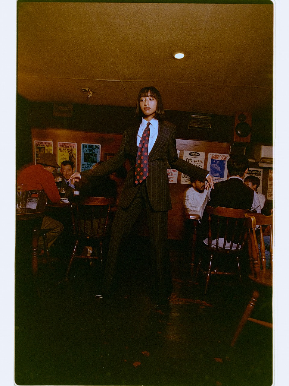 そういった意味で、今シーズンはスーツ品番も充実させています。それぞれは『DK20 Revenge of the popcorn(ポップコーンの逆襲)』は4Bダブルブレストジャケット+ベルトレスフレアトラウザーズ、『DK21 Make no sense(辻褄が合わない)』は3Bシングルブレストジャケット+2プリーツワイドトラウザーズ、『DK22 Reincarnation (転生)』は1Bワイドラペルジャケット+ベルトレスフレアトラウザーズ、といった感じですが、これらの名前についても「いちいち考えない」。店頭にて、思うままに感じてみてください。
