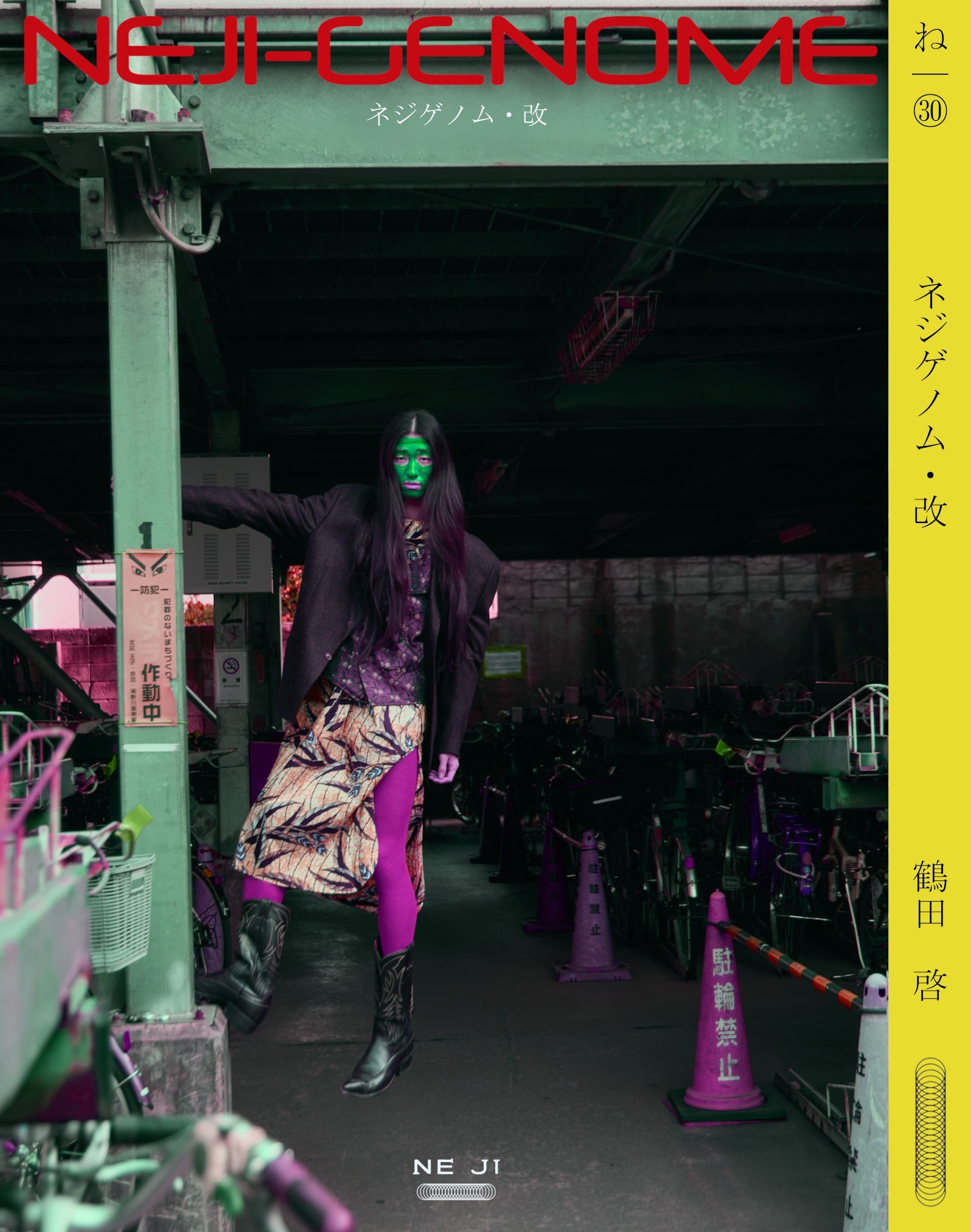 NEJI=鶴田啓による出版物第4弾「ネジゲノム・改」は、2024年に発行されて即完売したコンセプトブック「ネジゲノム」に大幅な加筆修正を施した、ほとんど別物の一冊。定点酒場妄想日記「笛を吹いてアルコール」を新録したほか、これまでに制作したファッションビジュアルとともにスタイリング/ディレクションの裏側を内省的に綴った「フィレオ・フィッシュの小骨」、書き下ろしの短編「ネジゲノム」などが螺旋状に絡み合いながら、独特のフォルムを形成していく。モノクロ文学とフルカラー写真ページが不規則に往来するゲノム配列の交差点を、二日酔いの涙目で突破せよ。